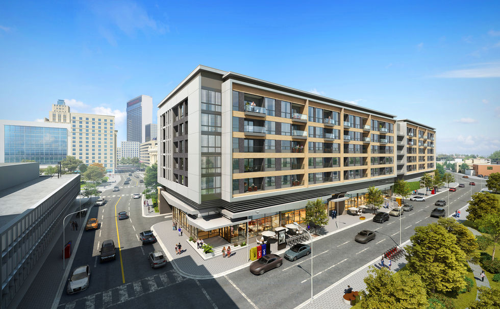 7-story, 182-unit, urban apartment in downtown Dallas with underground parking